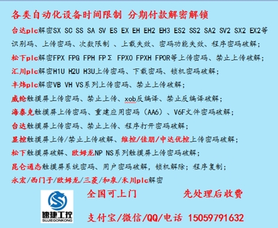 以上PLC均可提供PLC解密服務,純軟件解密,不需拆機,不會破壞PLC任何數據,盡可放心。