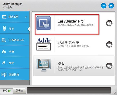 1. 點擊“設計”,再點擊“EasyBuilder Pro”,打開編程軟件。